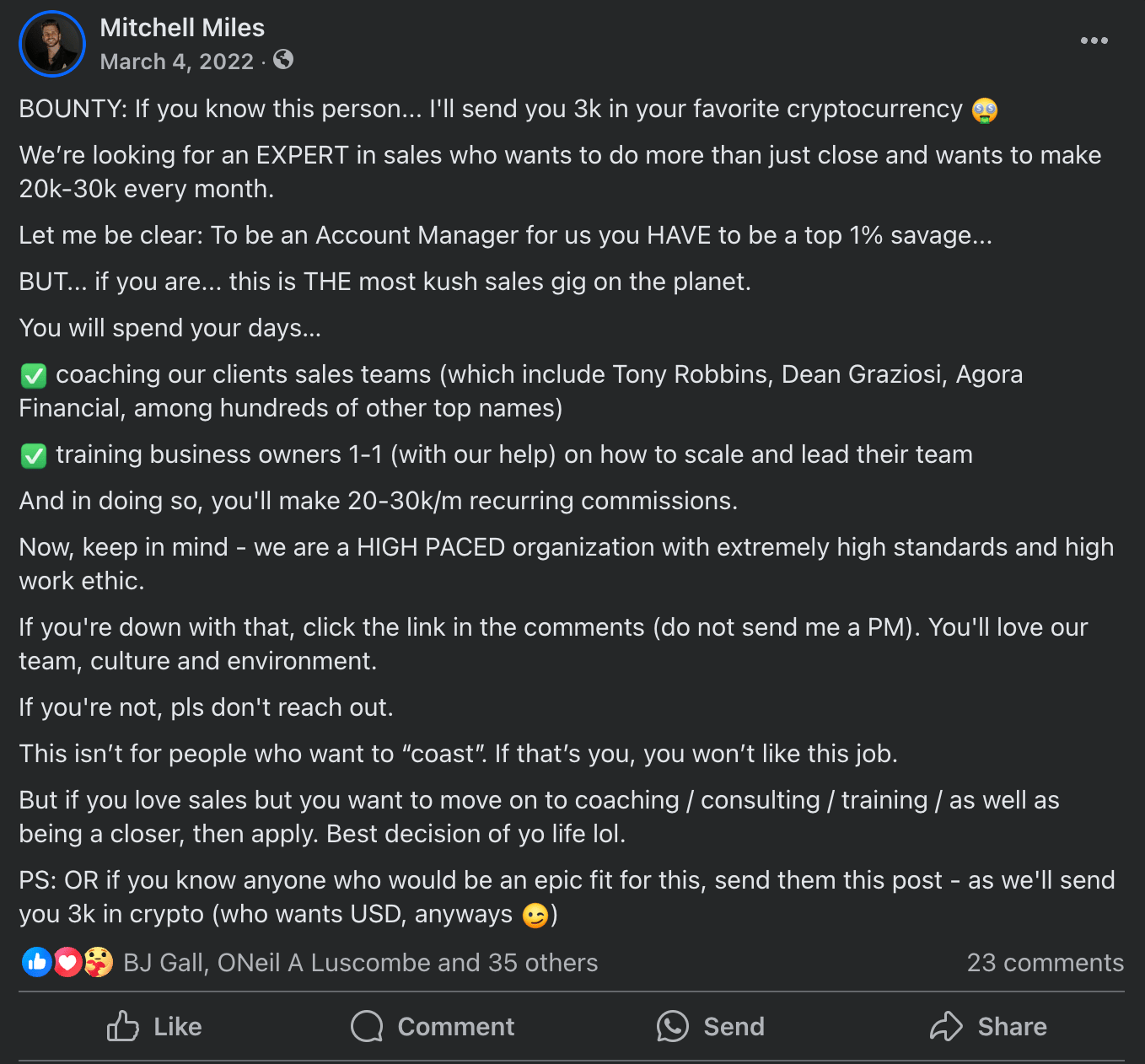 Whether we're talking about hiring or sales, it's very hard to beat referrals.